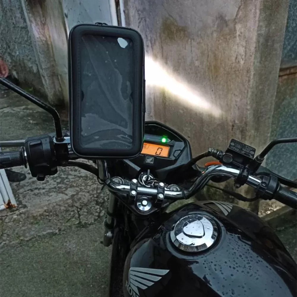 Característica: Soporte que protege tu teléfono de la lluvia, con una funda super protectora que no impide la vista al teléfono. Funciona con prácticamente cualquier iPhone, teléfono inteligente Android, dispositivos GPS entre 4 y 6.1 pulgadas de ancho. Este producto se instala directamente en la motocicleta, en el espejo retrovisor del vehículo eléctrico, seguro y protegido. La rotación de 360 grados le permite obtener la mejor vista posible para su dispositivo